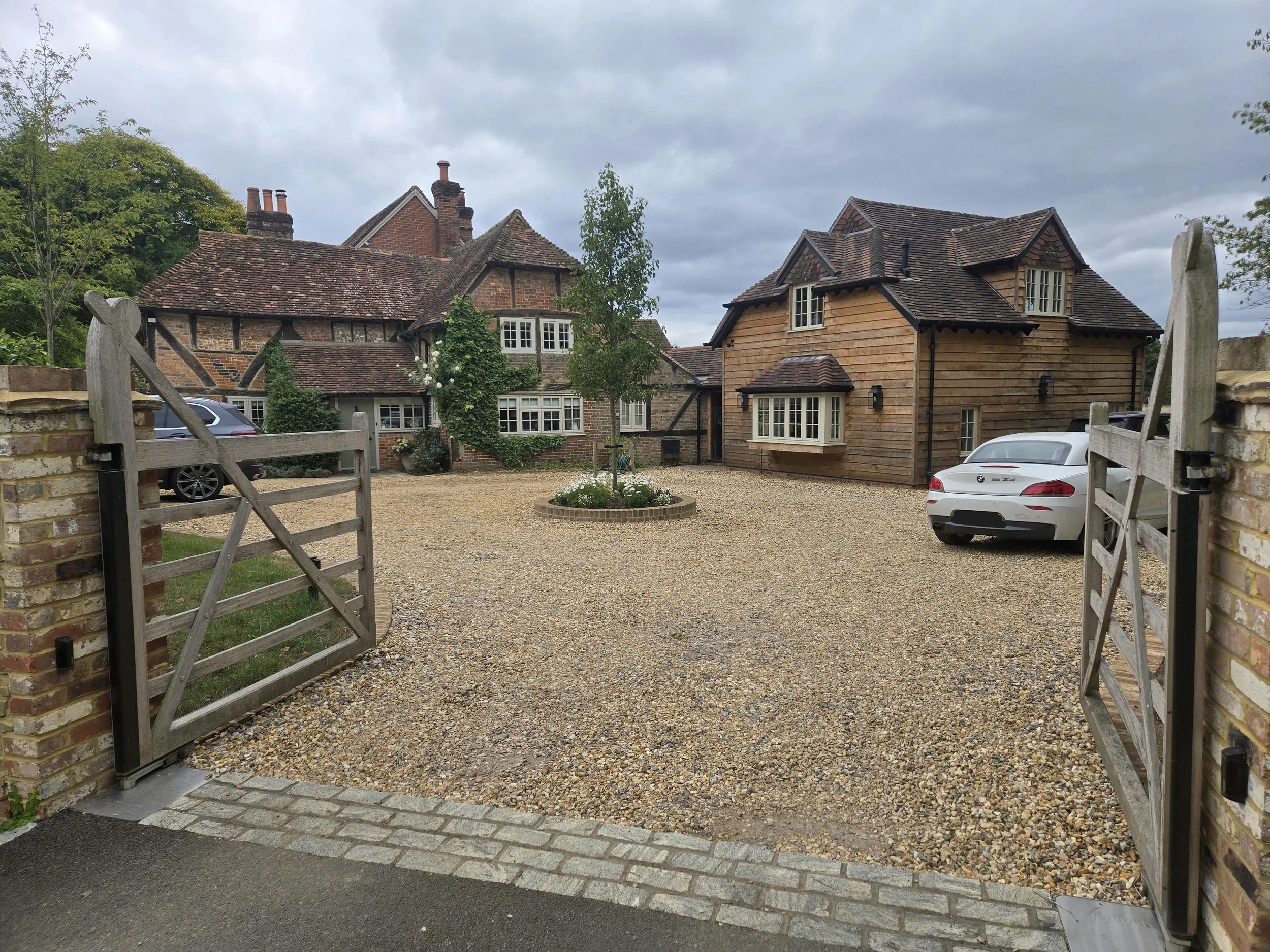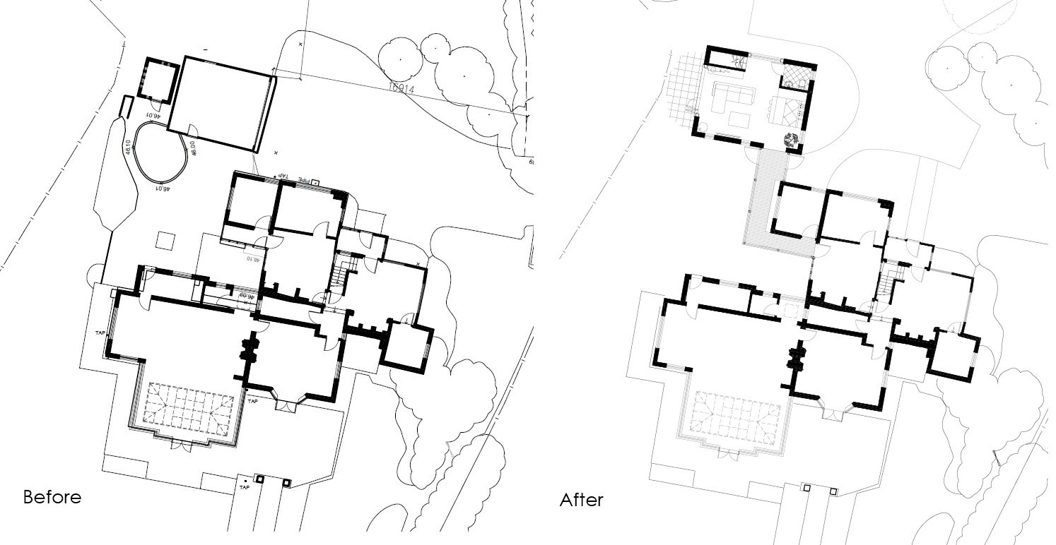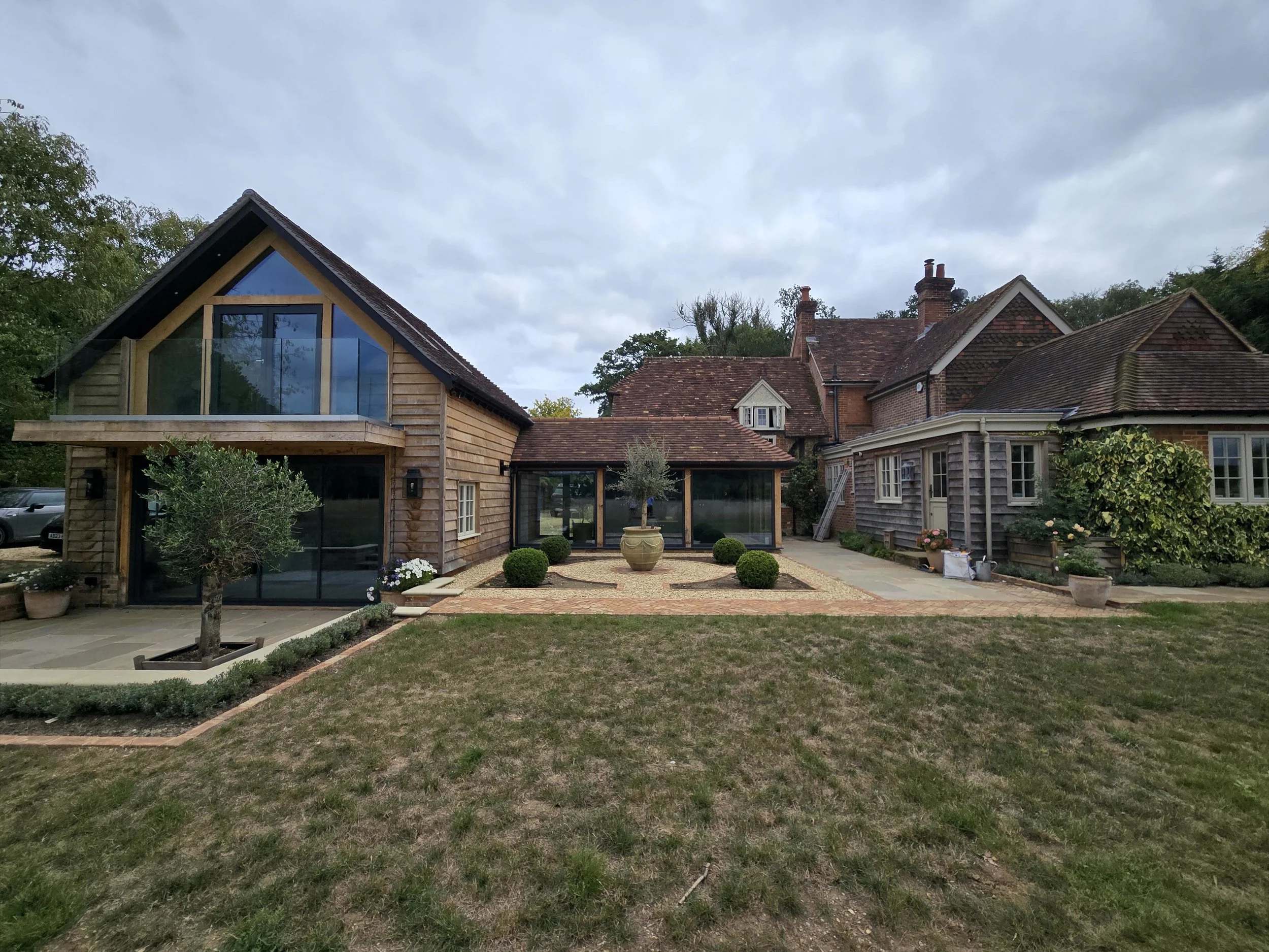 The proposals comprised the demolition of two existing outbuildings which were located to the north west of the dwellinghouse. They were erected after 1948 and their appearance detracted from the setting of the listed building. The new extension and alterations were designed in liaison with the Historic Buildings Officer at Waverley Borough Council. The extension was designed in the form of a timber clad barn that is linked back to the main house through a new glazed walkway. The proposed building was designed to appear visually subservient to the historic part of the dwelling which dates back to the 17th Century.